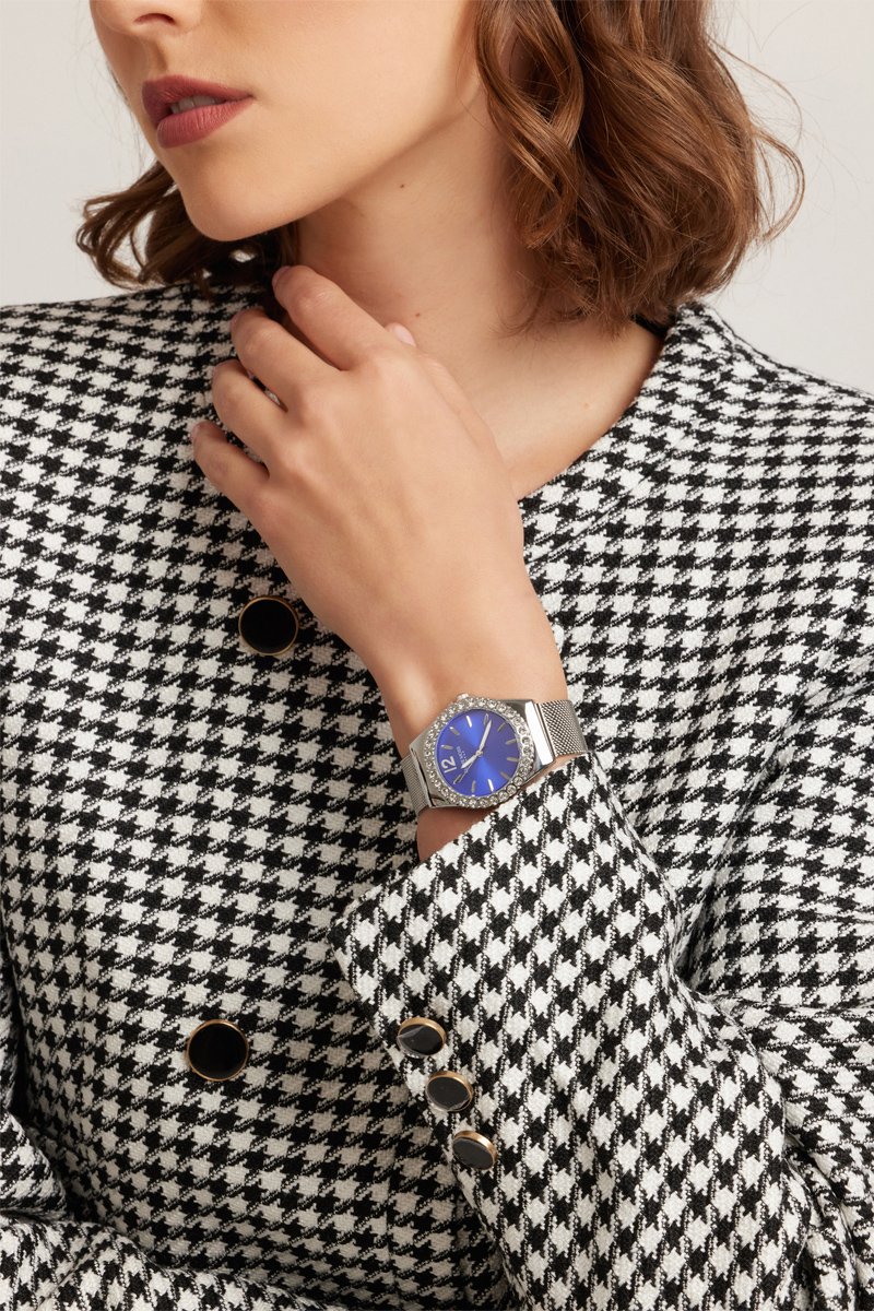 Stalen Quartz Horloge met Zirkonia’s Opera - Zilverkleurig en Blauw