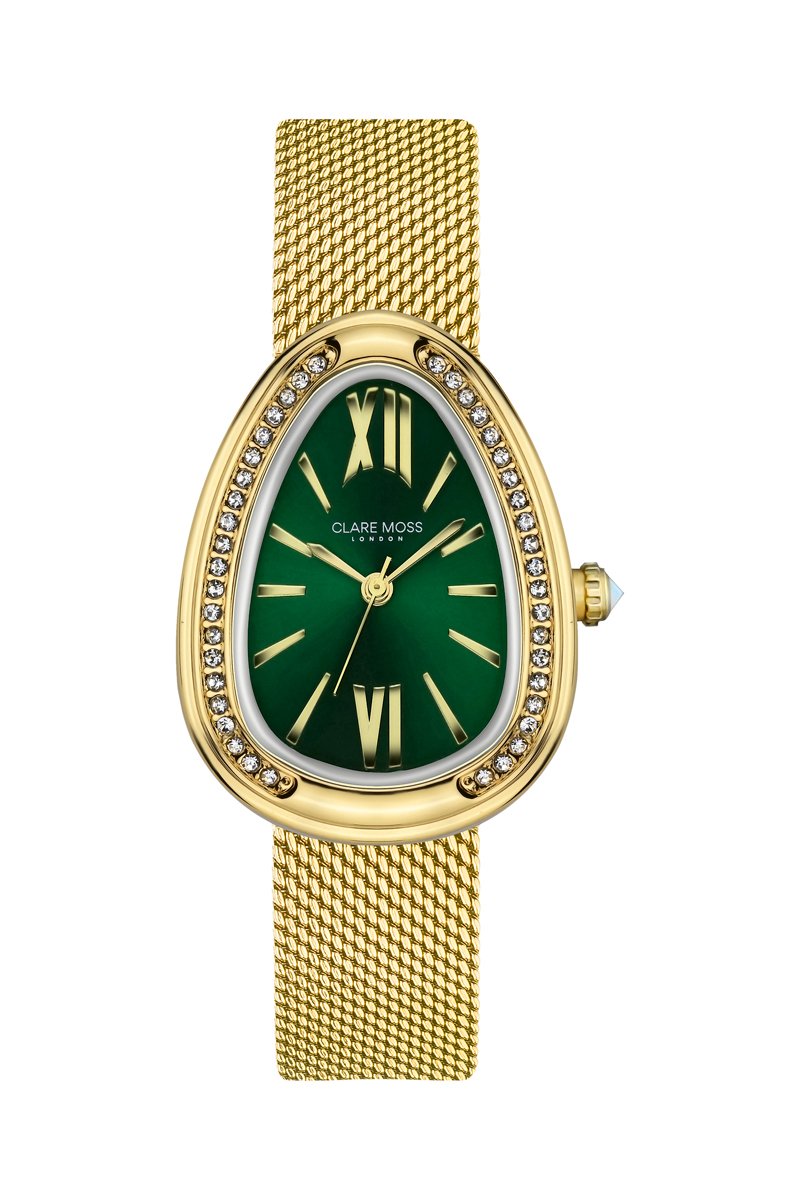 Stalen Quartz Horloge met Zirkonia’s Vintage - Goudkleurig en Groen