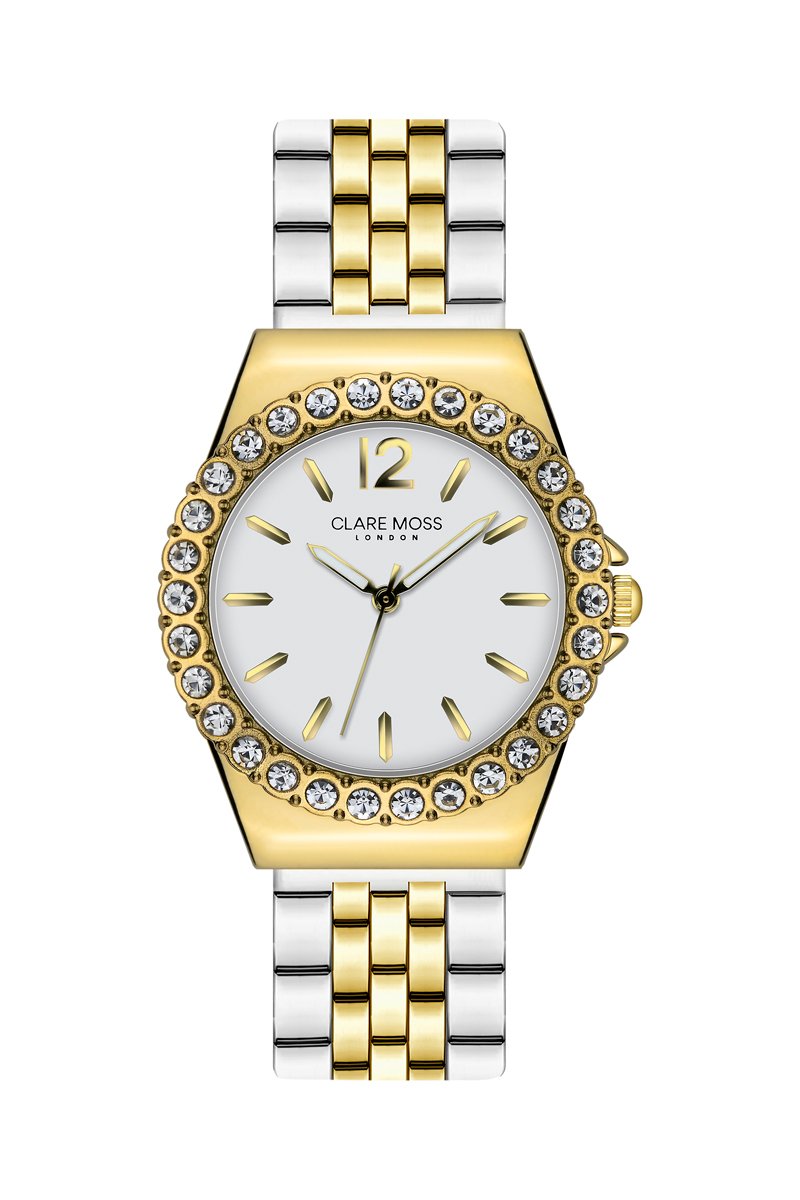 Stalen Quartz Horloge met Zirkonia’s Classic - Goudkleurig en wit