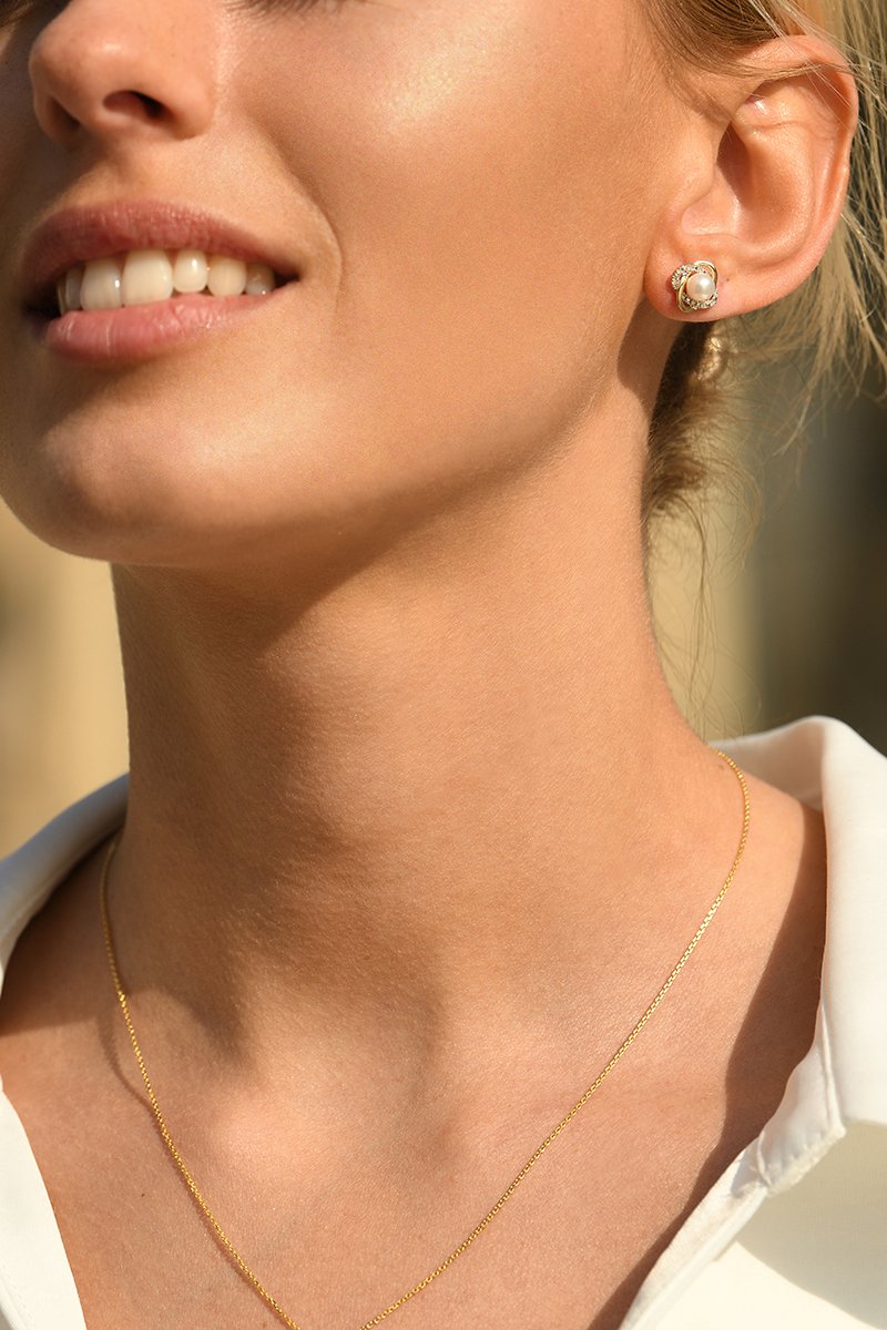 ##Puces Mitsa - Or jaune, diamants et perles de culture