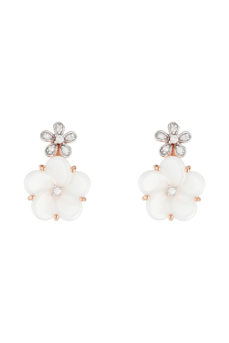 ##Boucles d'oreilles Floraisons - Or rose et diamants
