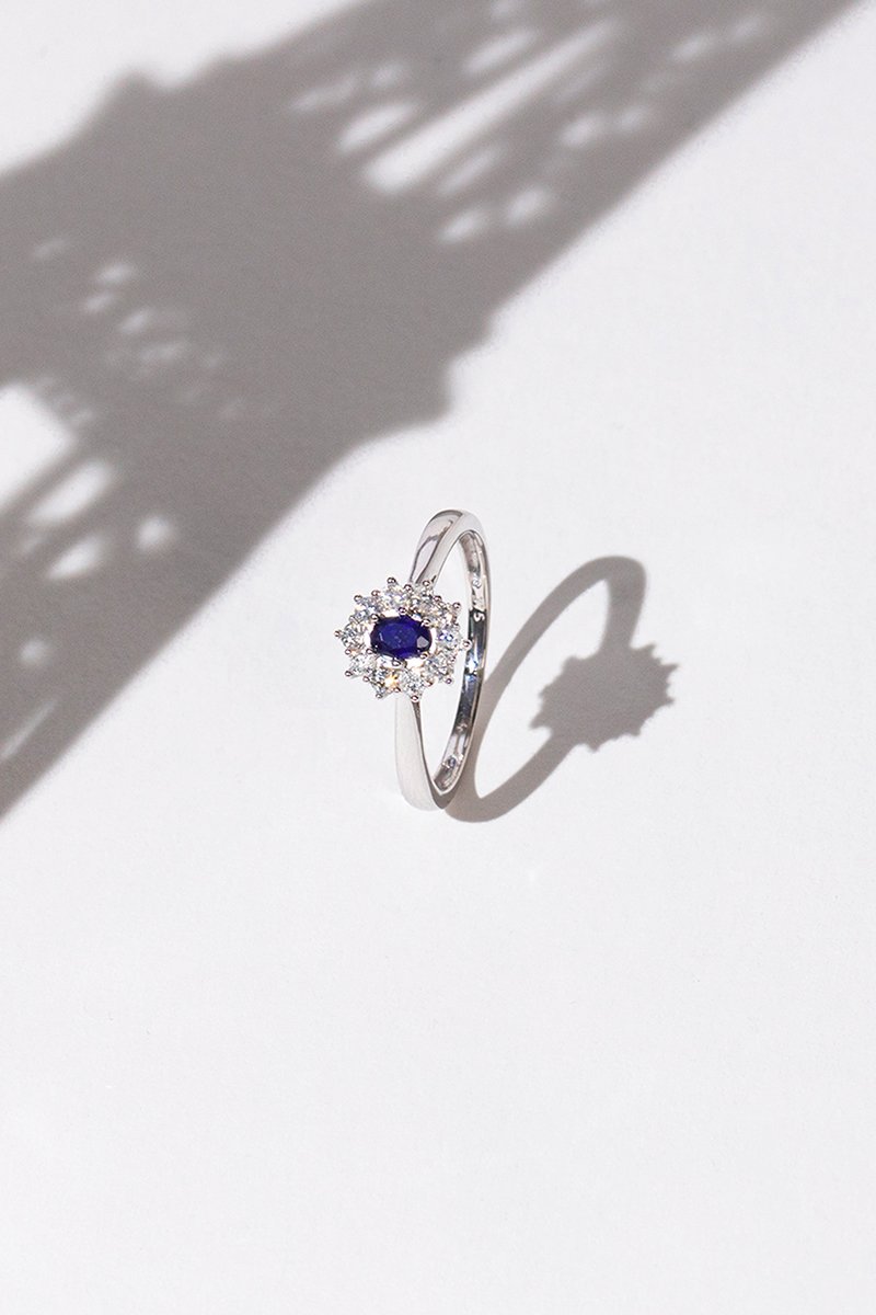 ##Bague Fleur de saison - Or blanc, saphir et diamants