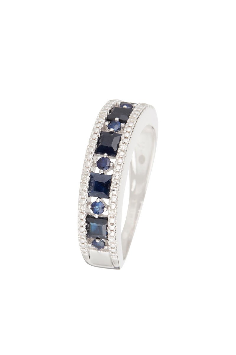 ##Bague en or blanc sertie de 14 diamants et de 11 saphirs.