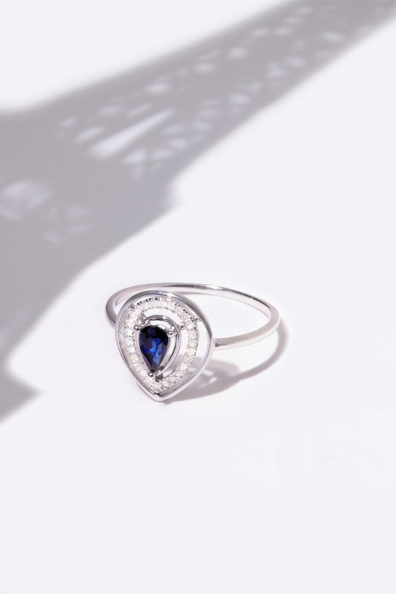 ##Bague Océane - Or blanc, saphir et diamants