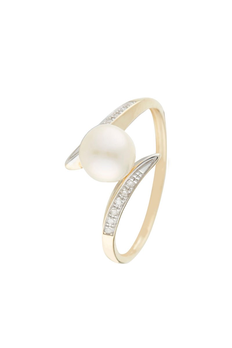 ##Bague Fenoa - Or jaune, diamants et perle de culture