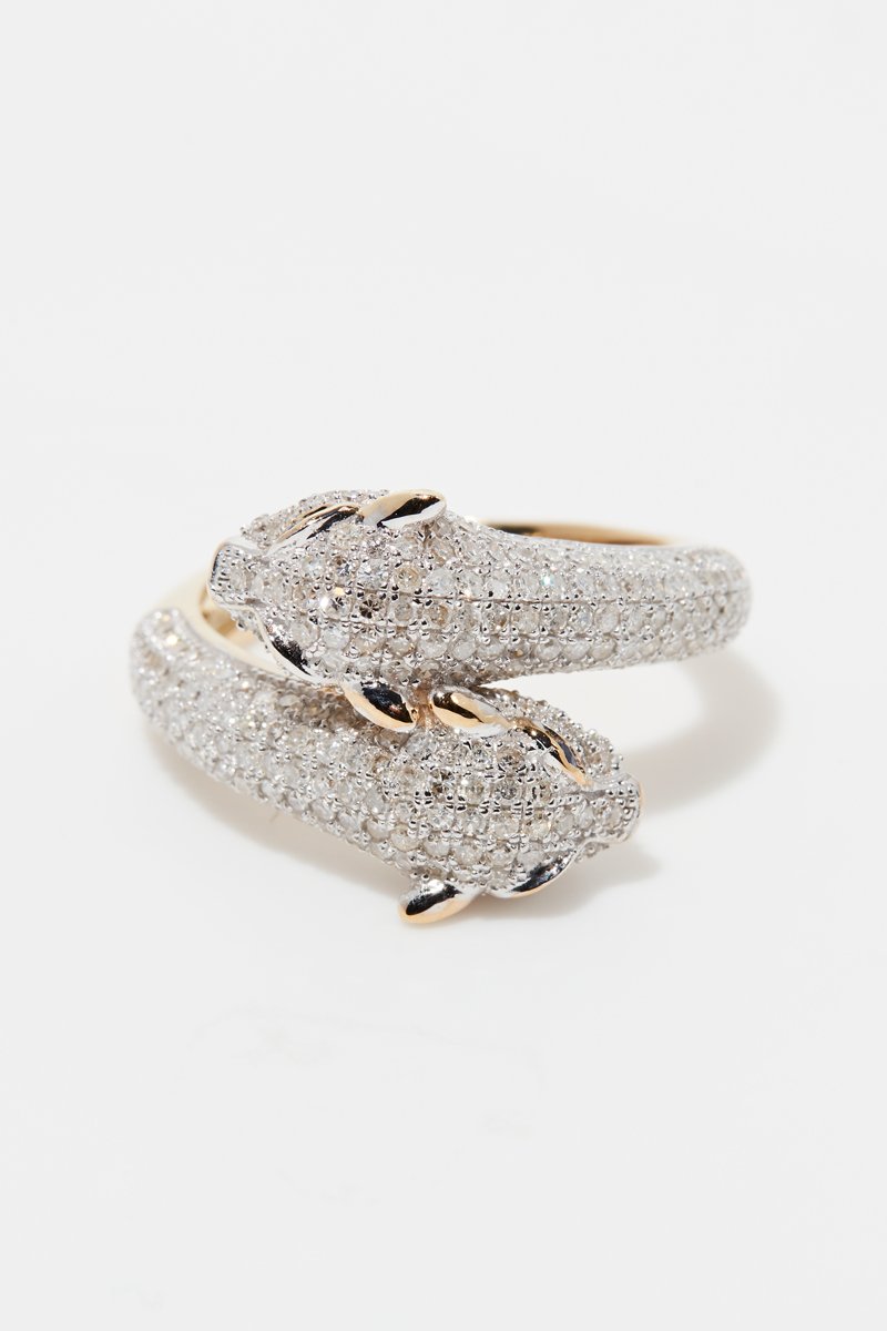 ##Bague Duo de Panthères - Or jaune, diamants et saphirs