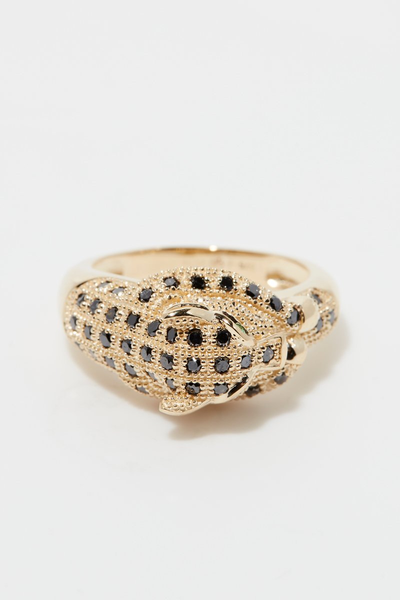 ##Bague Panthère Noire - Or jaune, diamants et émeraudes