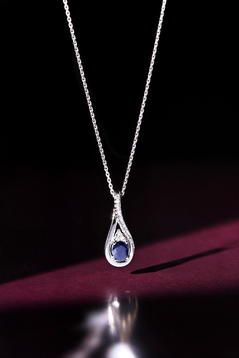 Hanger Blue Tear - Witgoud, Diamanten en Saffier