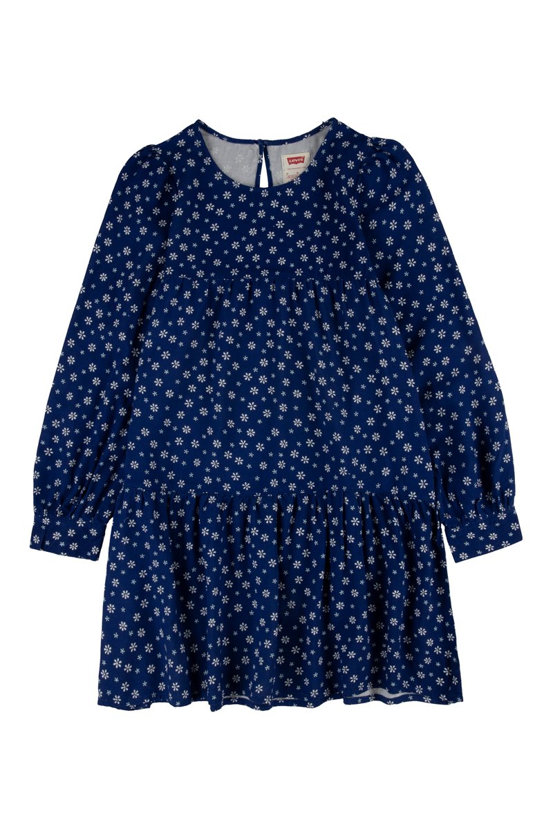 Geweven jurk met lange mouwen.