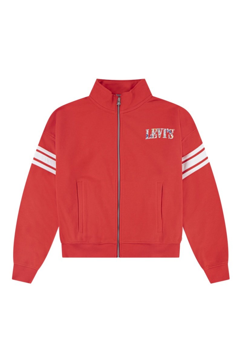 Bloemenmotief en geborduurd logo aan de voorkant.