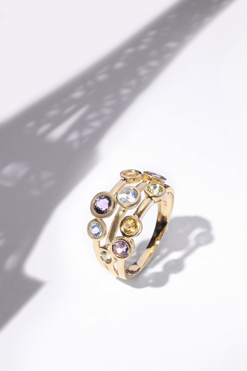 Ring Kamina - Geelgoud, Amethisten, Topazen, Citrienen en Peridoten