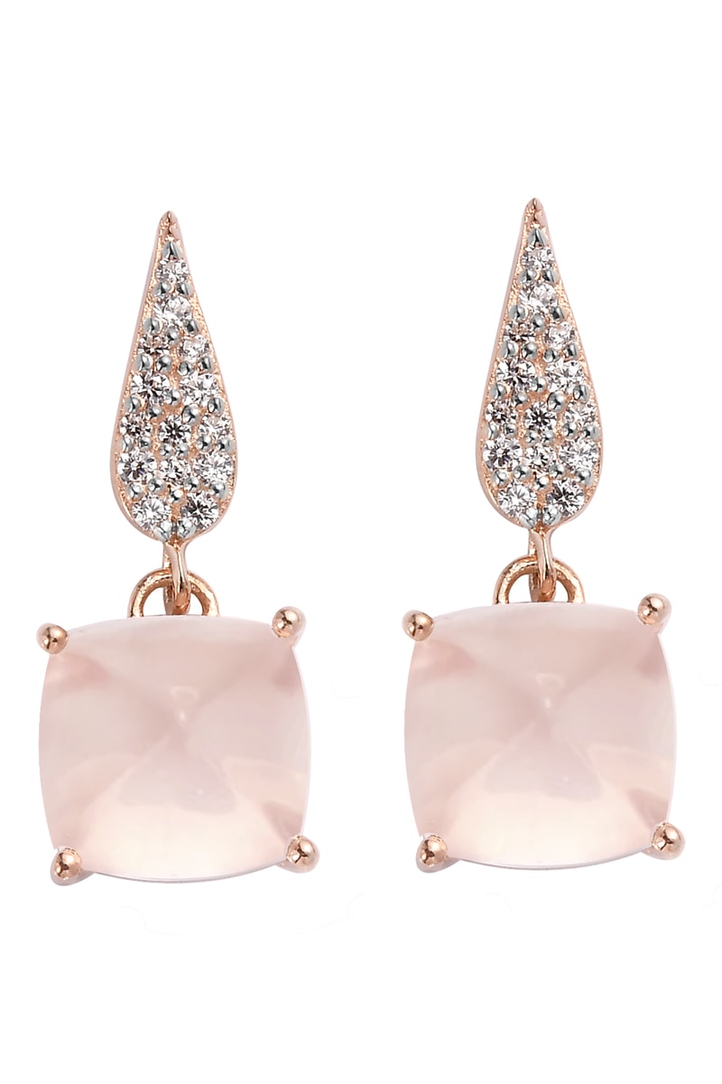 Oorbellen van zilver ingelegd met rozenkwarts en zirknia’s.