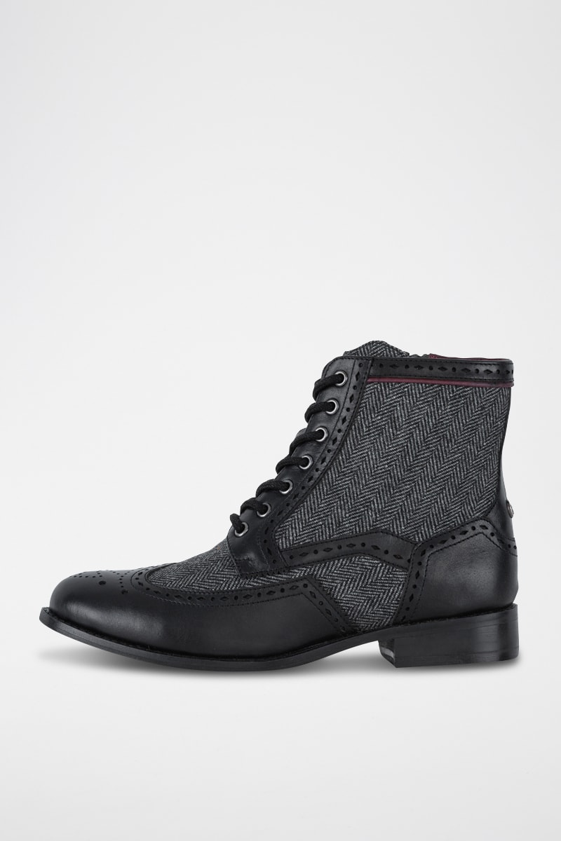 Chevronmotief motief en decoratieve perforaties aan de voorkant, aan de zijkanten en aan de achterkant.