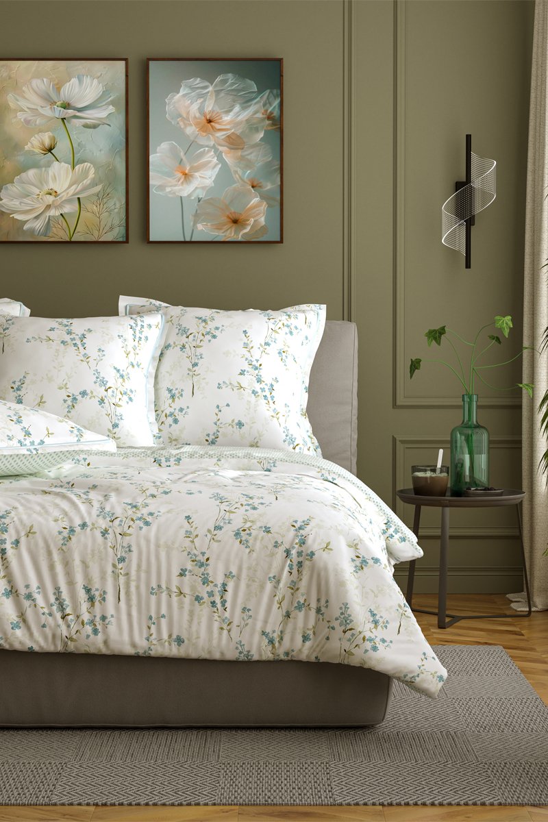 Katoenen Lakenset 57 Draad/cm² Lilou- Wit en Blauw