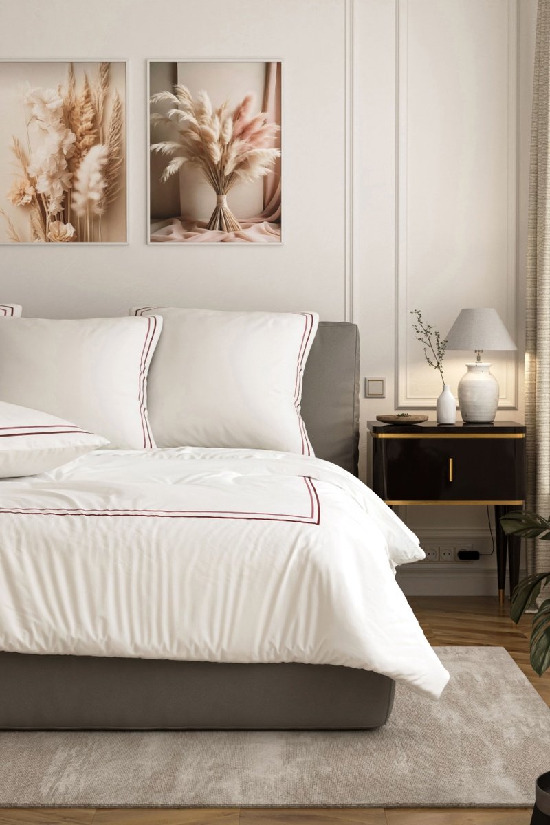 Katoenen Overtrekset 80 Draad/cm² - Wit en Bordeauxrood