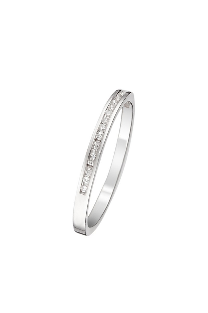 Trouwring van witgoud ingelegd met 20 diamanten.
