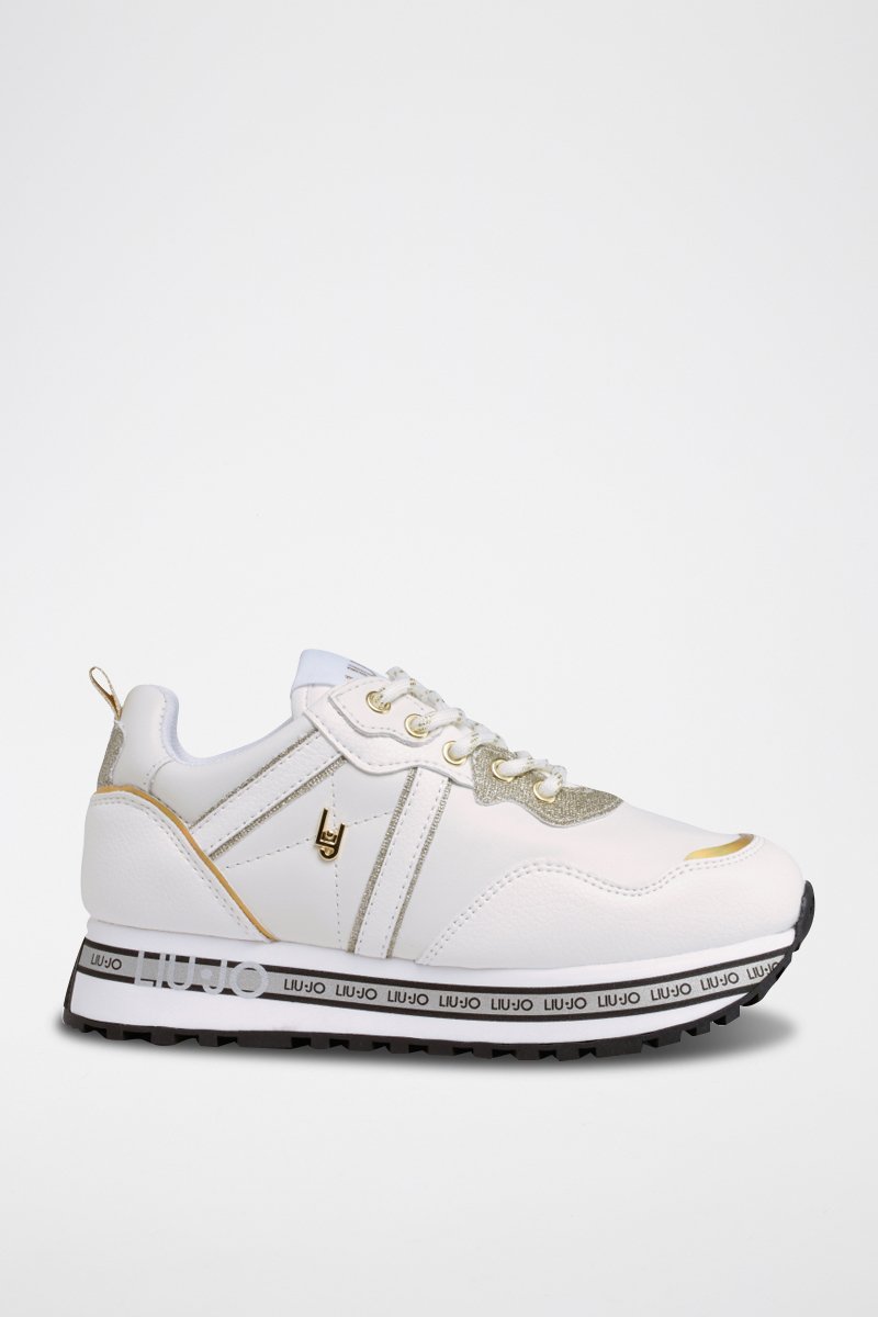 Stierenleren Platform Sneakers Wonder - Wit en Goudkleurig