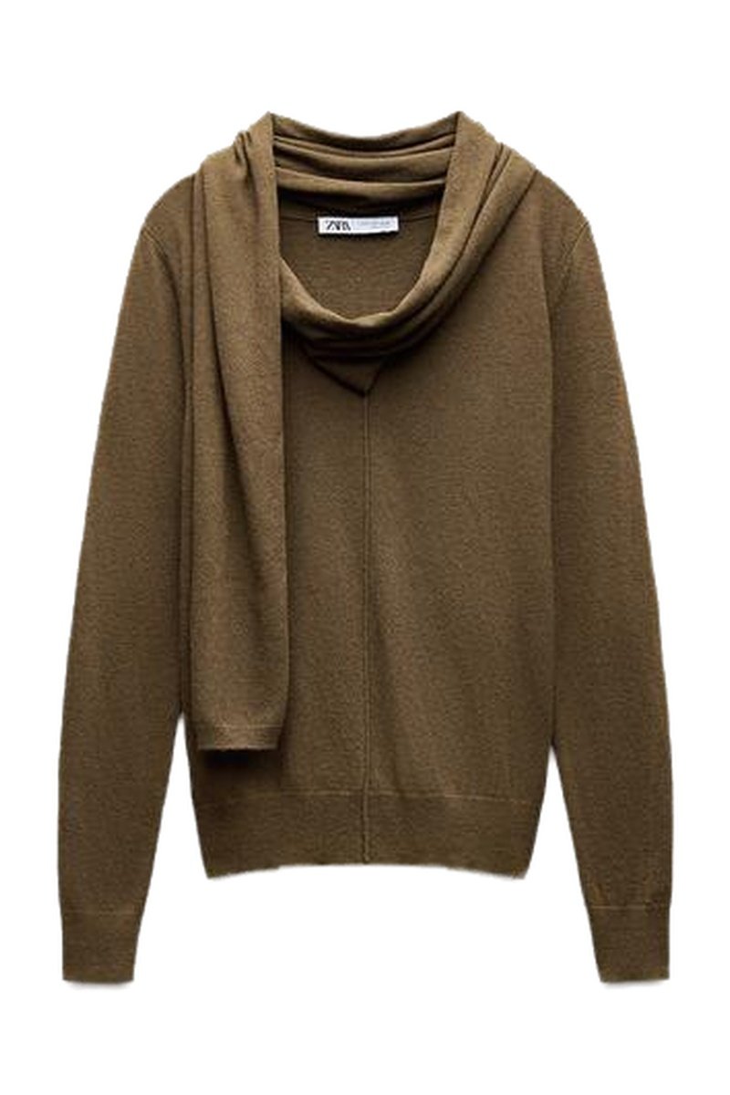 U-hals met geïntegreerde sjaal.