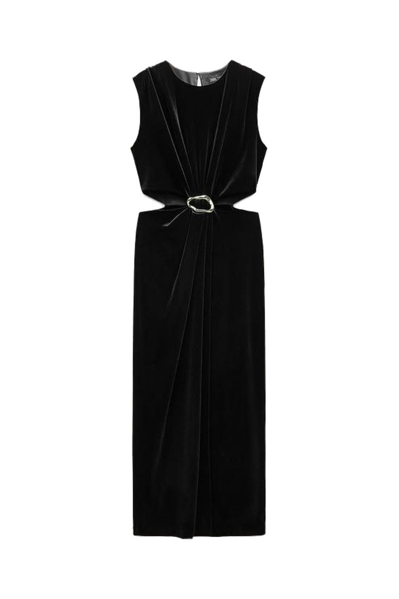 Rechte Velours Jurk - Zwart