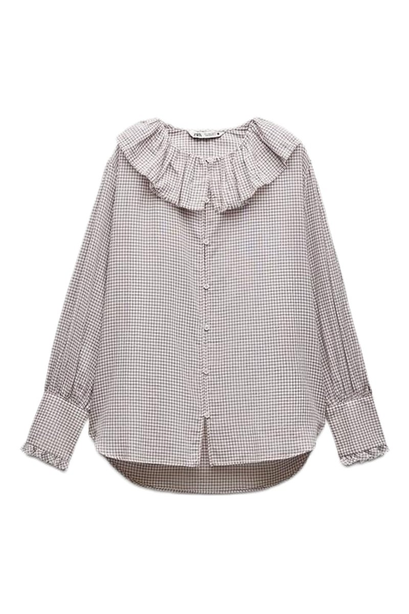 Ruches bij de hals en op de mouwen.
