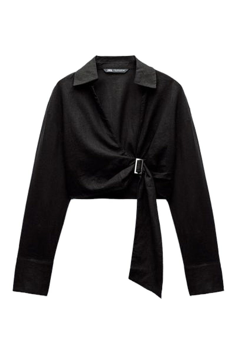 Linnen Wikkelblouse - Zwart