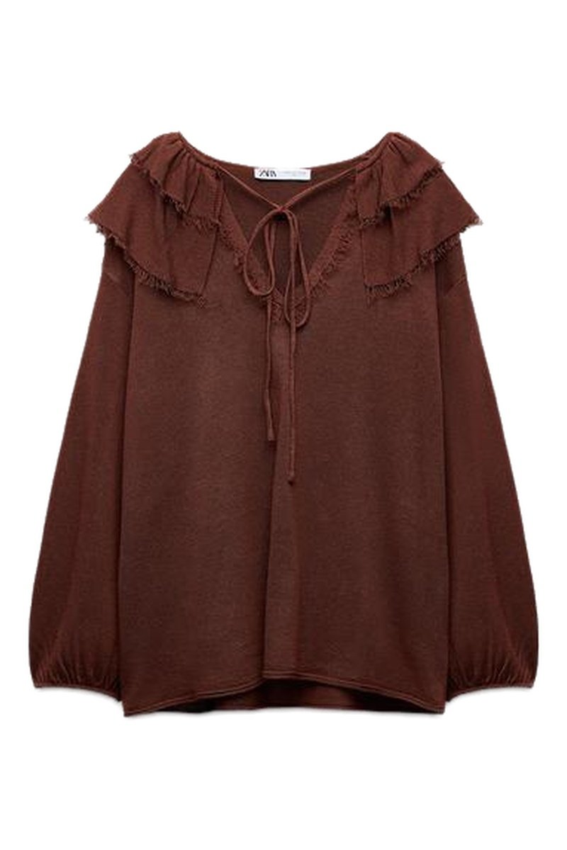 Tunesische hals met strikkoorden en ruche.