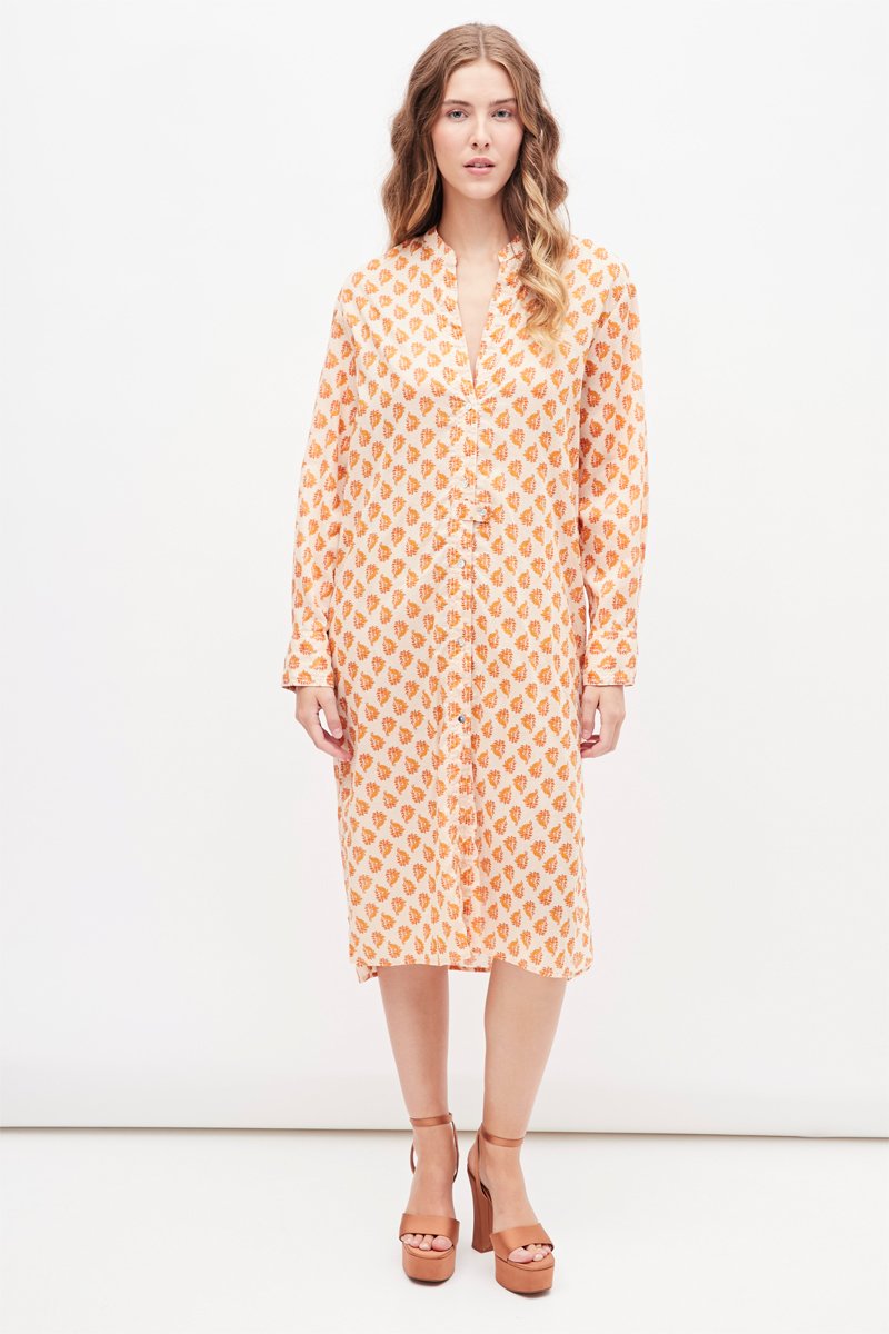 Blouse-jurk - Ecru en Oranje