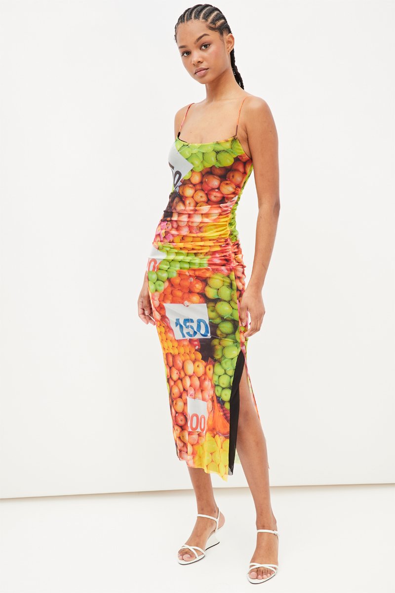 Midi-jurk - Groen en Oranje