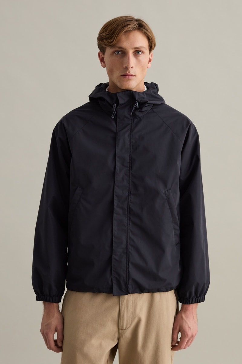 Trekkoorden met stoppers bij de capuchon en aan de onderkant.
