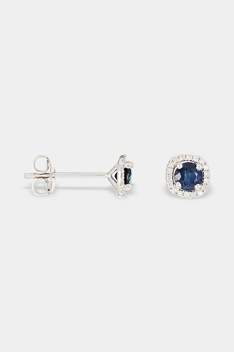 Oorbellen van witgoud ingelegd met 18 diamanten en 1 saffier.