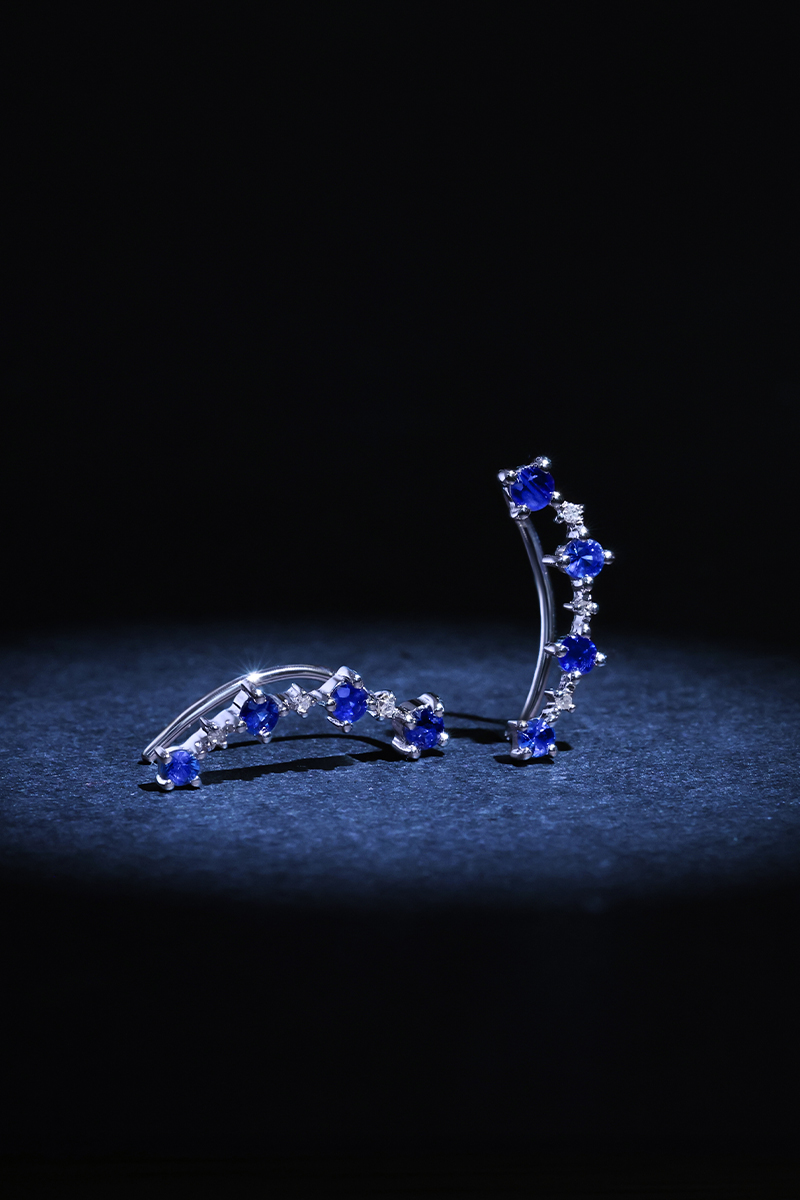 Oorbellen Océan - Witgoud, Diamanten en Saffieren