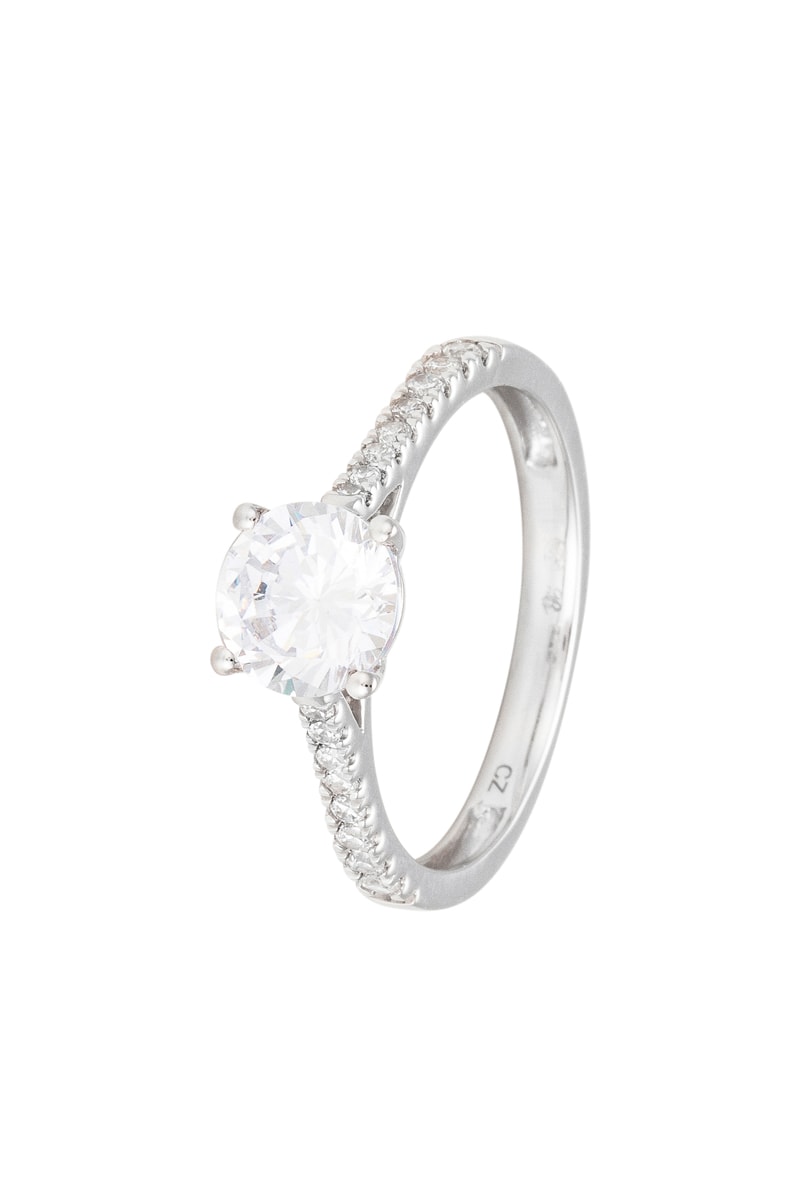 Verlovingsring van witgoud ingelegd met 25 diamanten waarvan 1 solitair.