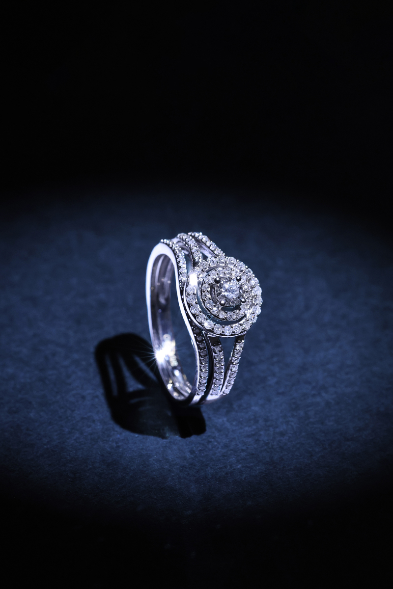 Ring van witgoud ingelegd met 106 diamanten.