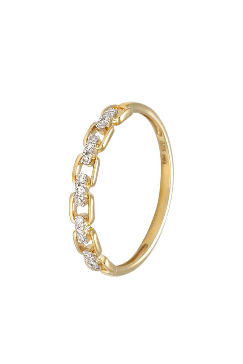 Materiaal: geelgoud 375/1000 en diamanten 0,07 karaat/15