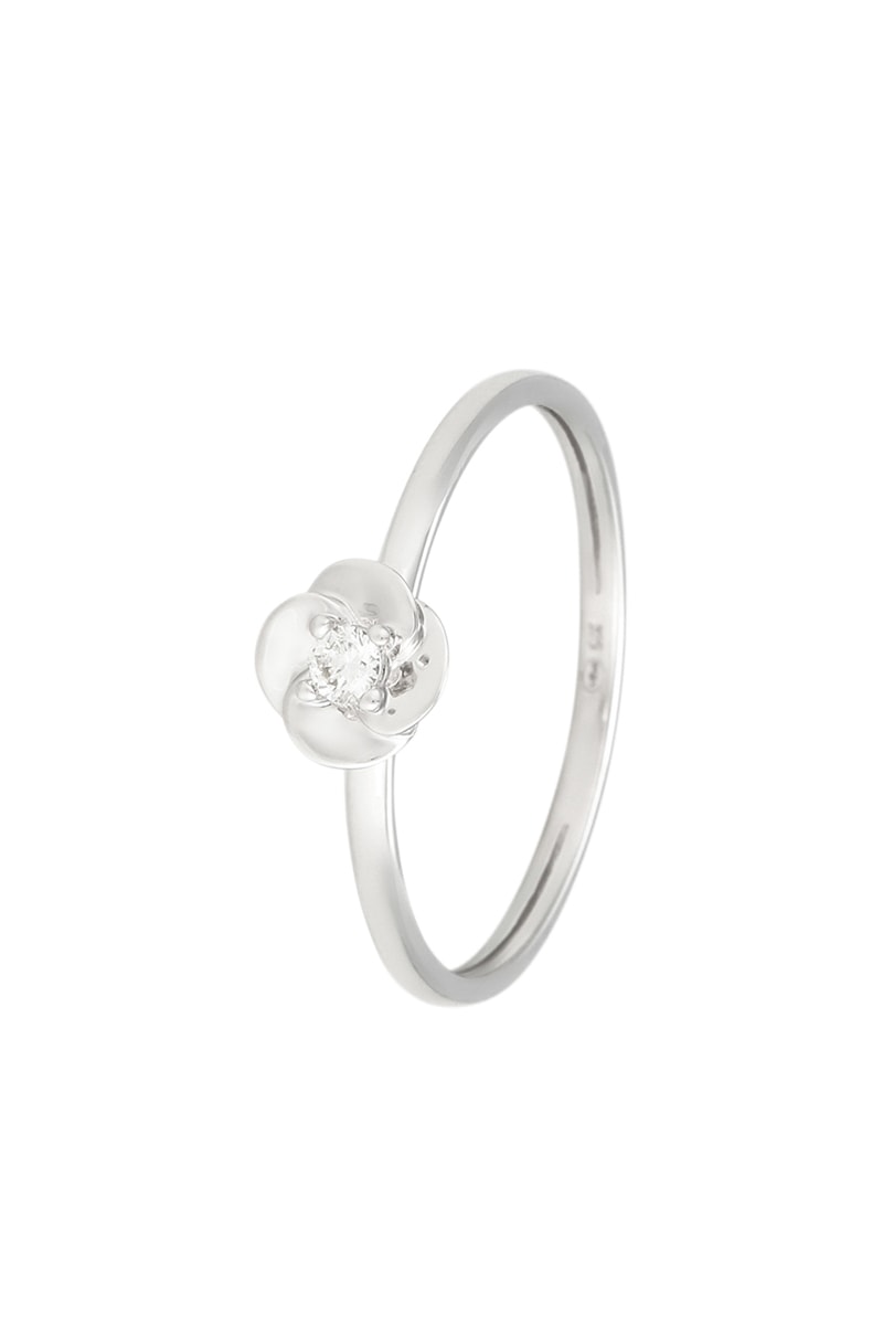 Ring van witgoud ingelegd met 1 diamant.