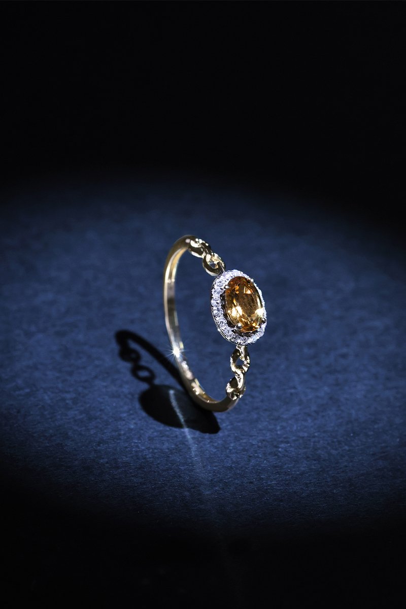 Ring Mélusine - Geelgoud, Diamanten en Citrien