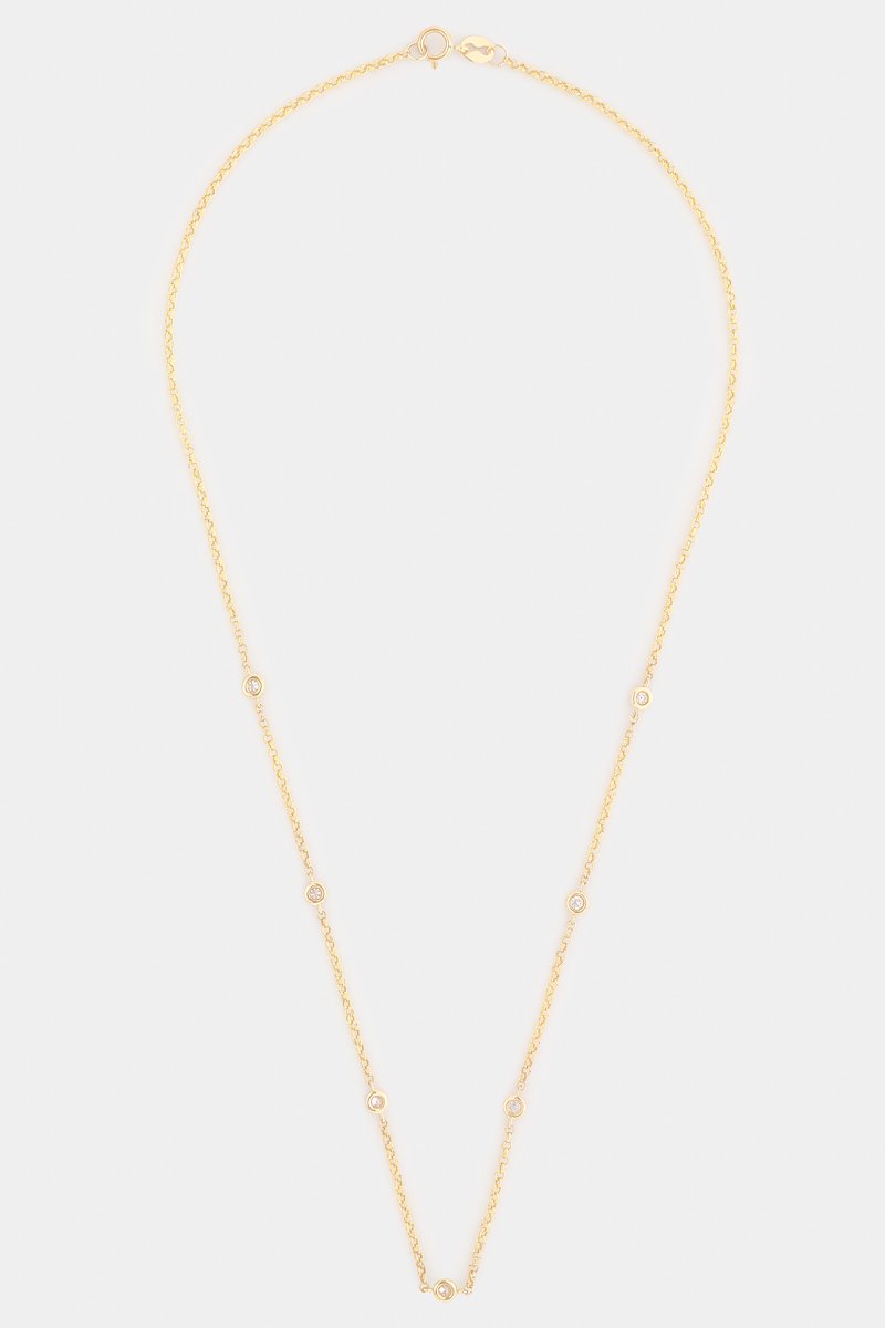 Ketting van geelgoud ingelegd met 7 diamanten.