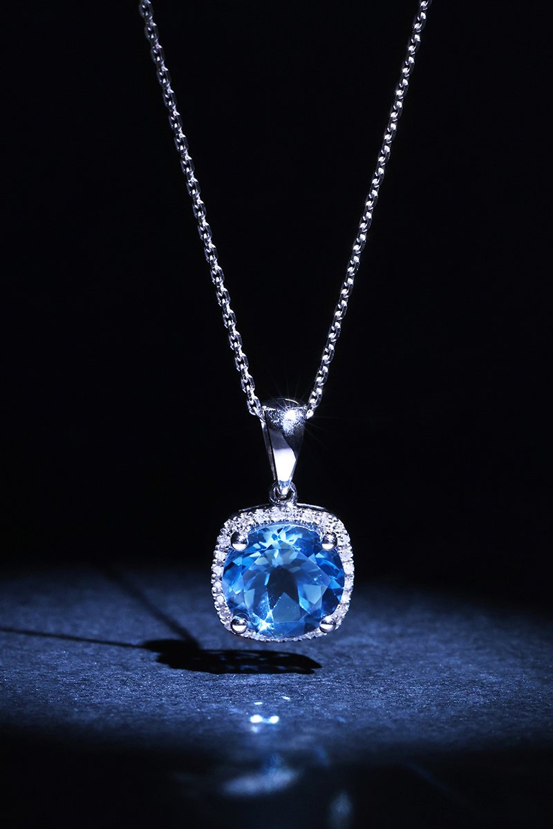 Materiaal: witgoud 375/1000, diamanten 0,08 karaat/28 en topaas 1,7 karaat/1