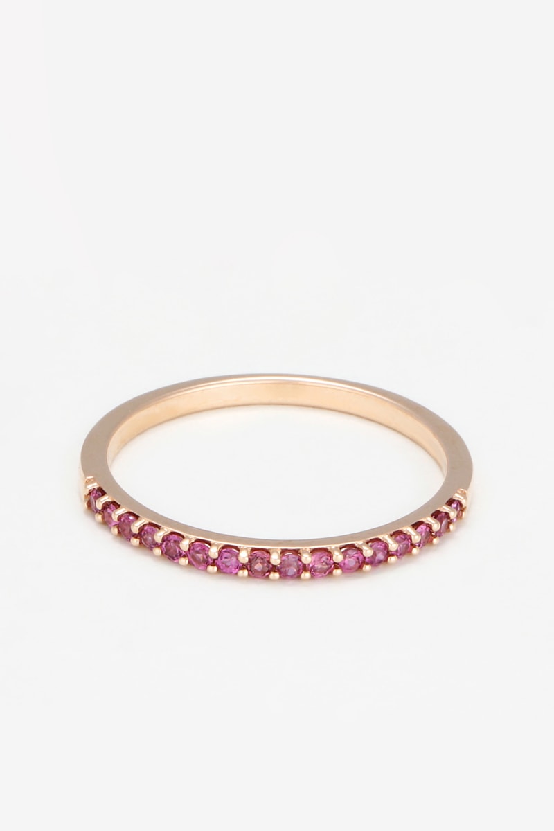 Ring van roségoud ingelegd met 16 rhodolieten.