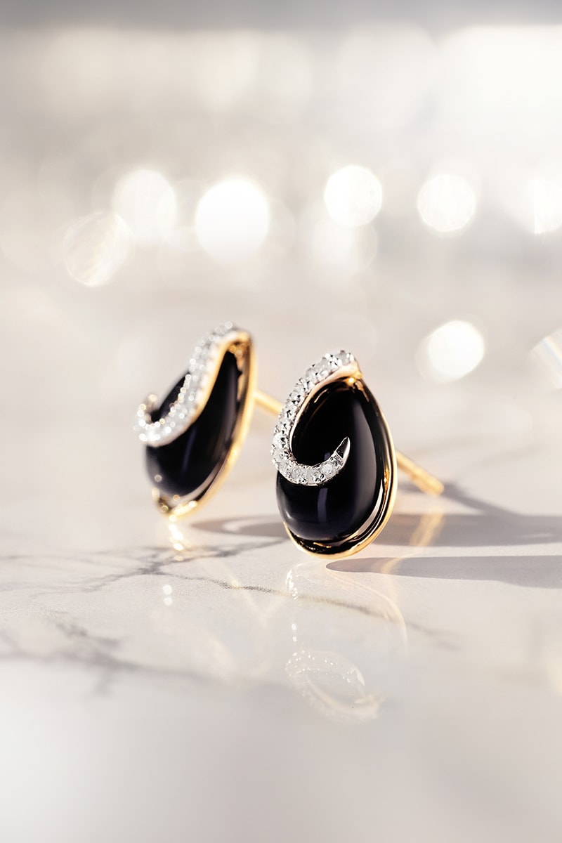Materiaal: geelgoud 375/1000, diamanten 0,08 karaat/24 en Agaten 1,5 karaat/2