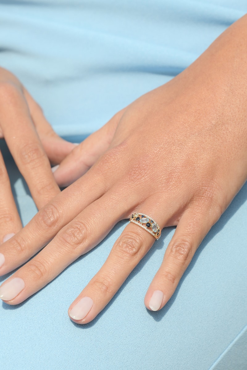 Bague Dahra - Geelgoud, Diamanten, Topazen & Saffieren