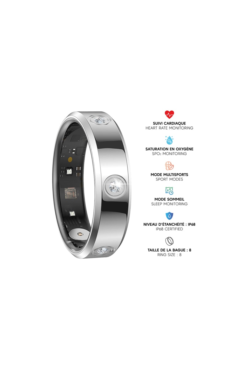 Tijdloos en technologisch geavanceerd, deze echte slimme ring biedt zijn gebruiker een reeks informatie over zijn fysieke activiteiten terwijl hij bevrijd wordt van de beperking op de pols.