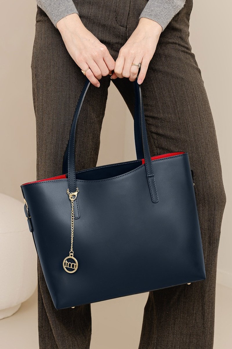 Leren Shopper Gracchi - Zwart - Marineblauw