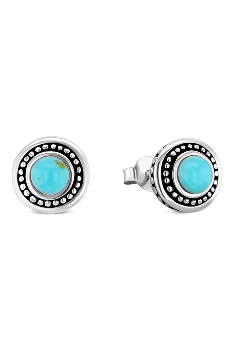Oorbellen van zilverkleurig brons ingelegd met 1 kunstturkoois.