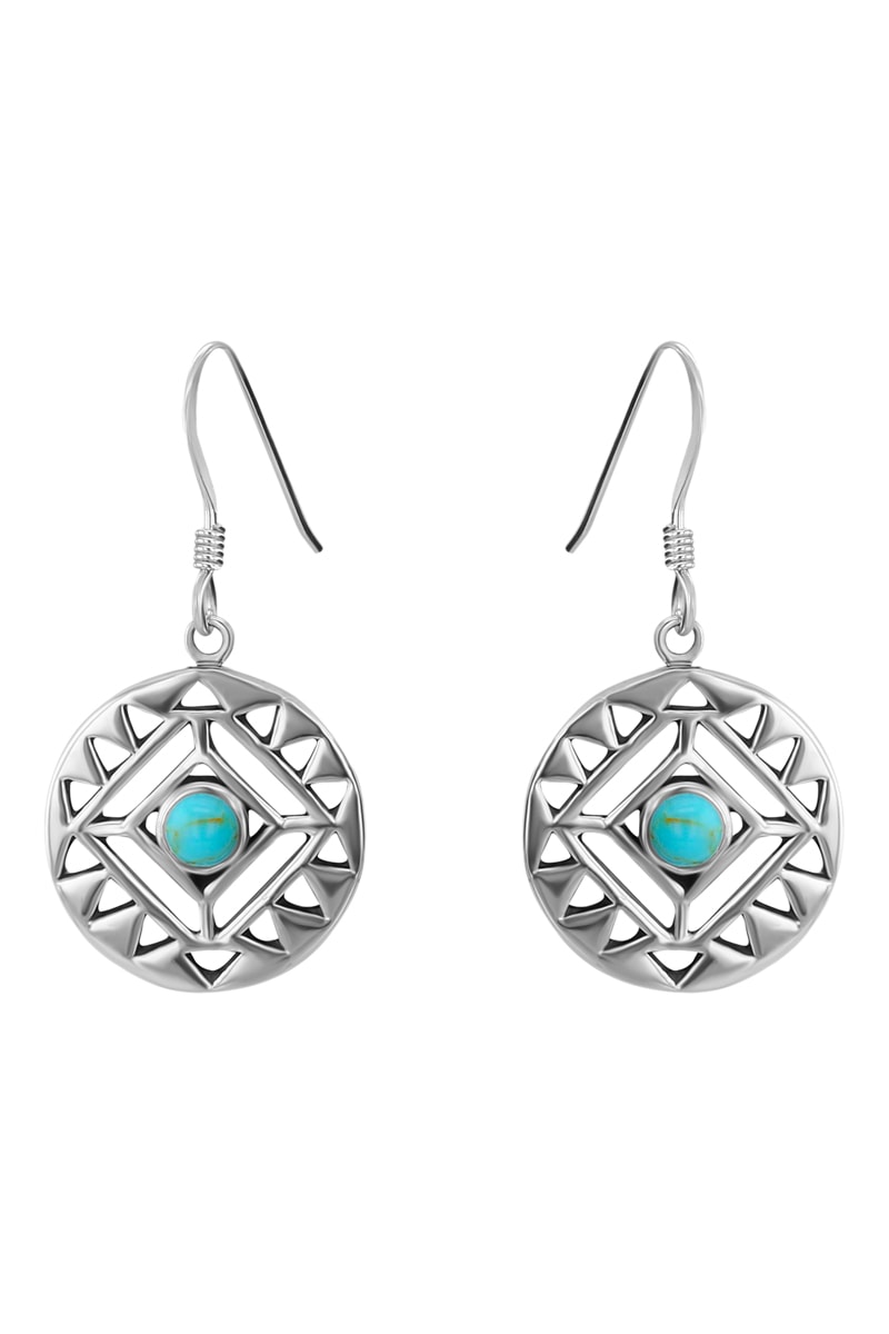 Oorbel van zilverkleurig brons ingelegd met 1 kunstturkoois.