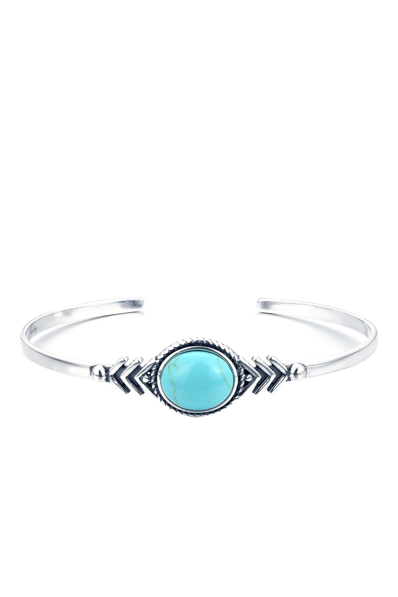 Open armband van zilverkleurig brons ingelegd met 1 kunstturkoois.