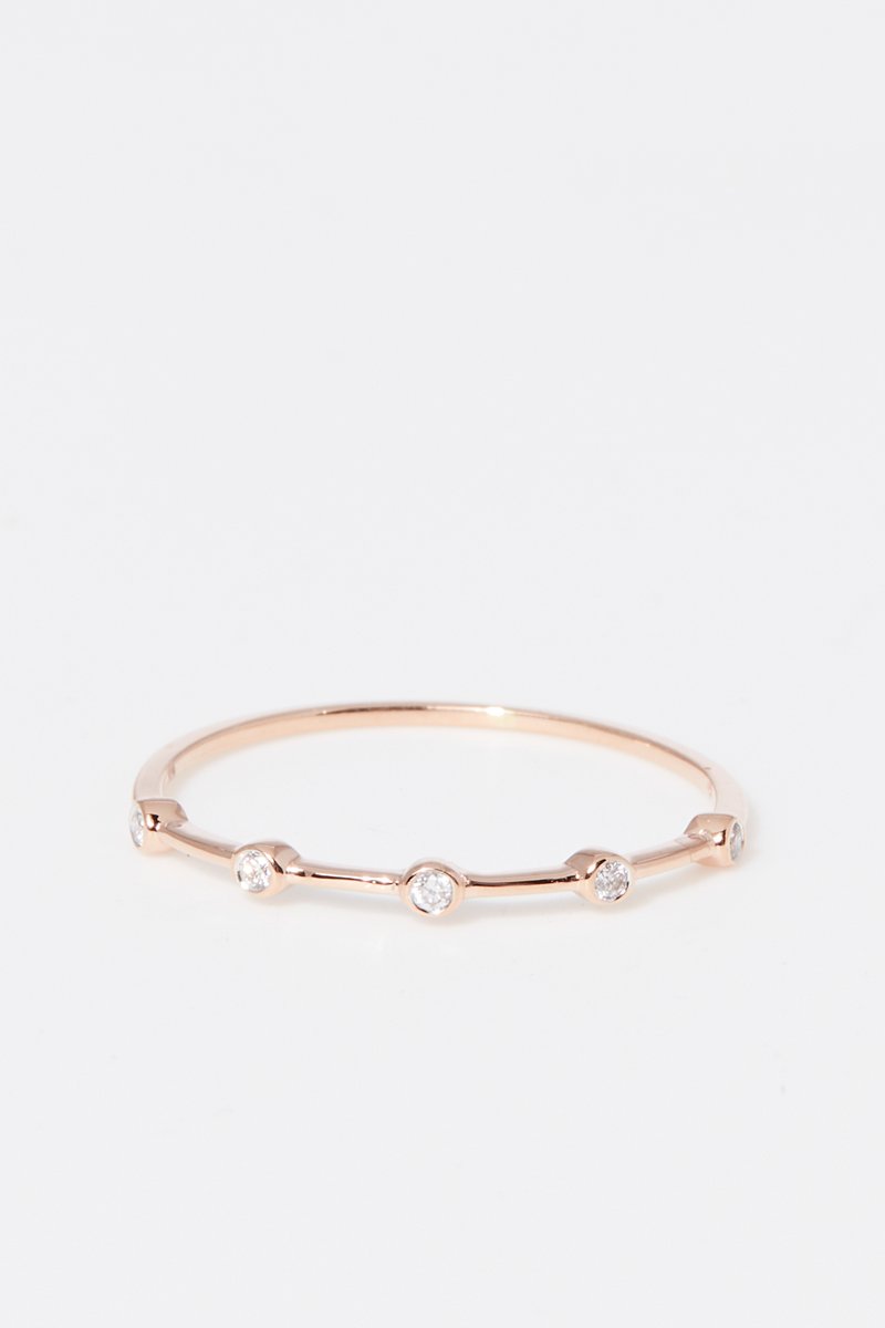 Ring van roségoud ingelegd met 5 diamanten.