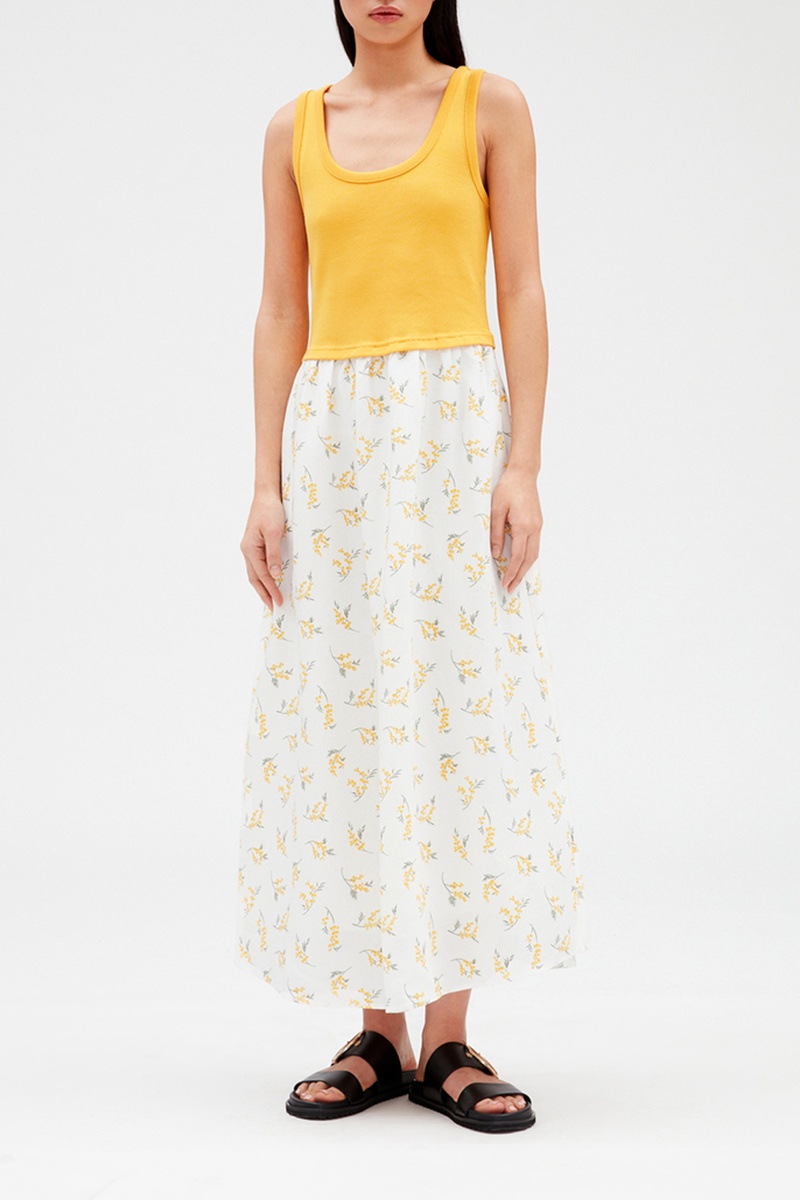 Jurk met driekwartmouwen met trompe-l’oeil effect.