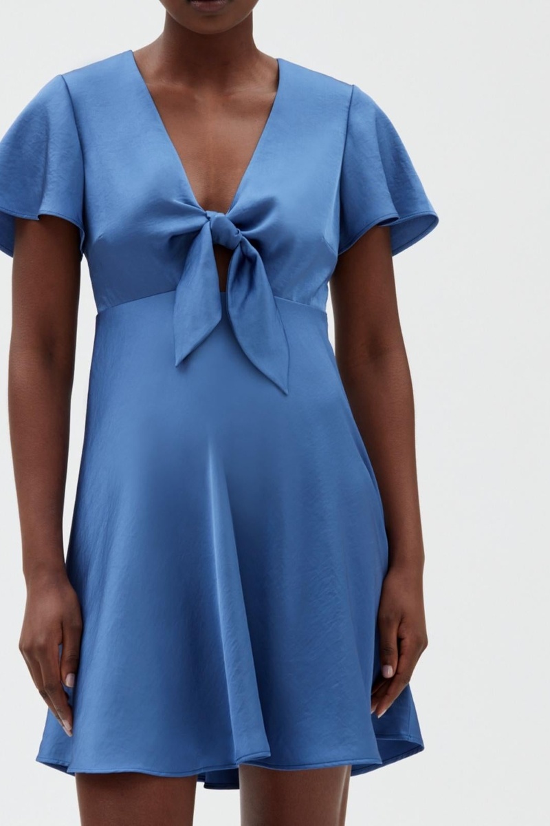 Jurk van satijn met strikkoorden.