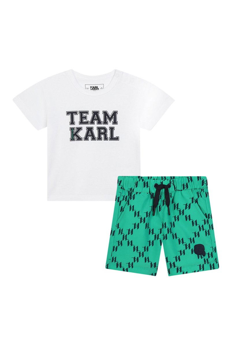 Biologisch Katoenen T-shirt en Zwemshort - Wit en Groen
